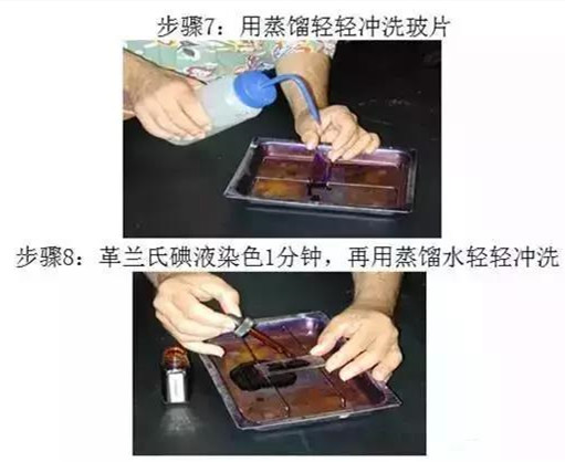 涂片→干燥→固定→初染→水洗→媒染→水洗→脫色→水洗→復(fù)染→水洗→干燥→觀察