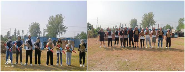 開場,伙伴們在教練的帶領(lǐng)下,參加了真人CS項目。穿上配套服裝,拿好道具,一個個殷姿颯爽,等待著雙方場上的英勇對決。參賽選手被分為2組,一組被分為2對。賽前,參賽選手仔細聆聽著教練的講解;賽場上隊友們相互配合,分工協(xié)作,有沖鋒的,有掩護的,時而聚在一起商量對策。